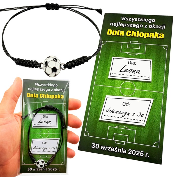 Bransoletka Piłka + Życzenia – Prezent na Dzień Chłopaka (Szkoła / Przedszkole)