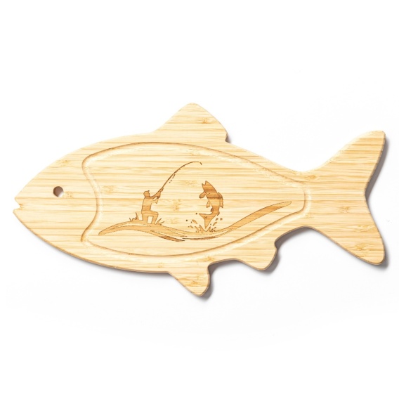 Deska bambusowa w kształcie ryby z grawerem wędkarza – styl i funkcjonalność w jednym