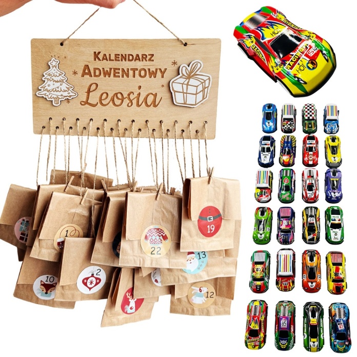 Kalendarz Adwentowy Autka z Imieniem to wyjątkowy pomysł na prezent świąteczny, który: