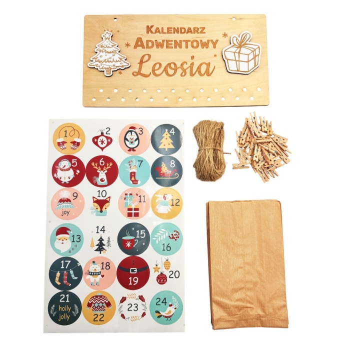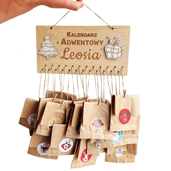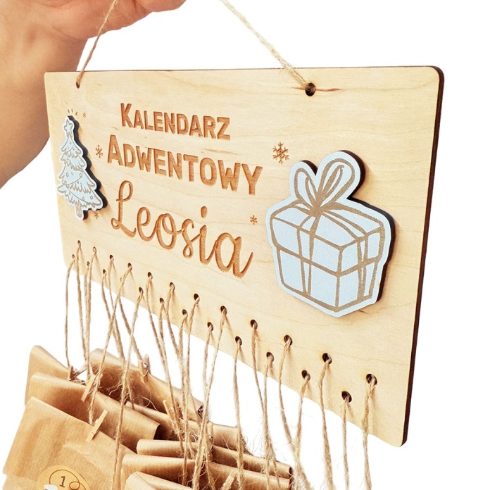 Na froncie trwały grawer: „Kalendarz Adwentowy + imię dziecka”