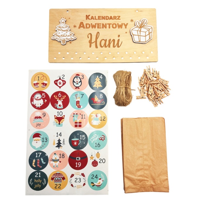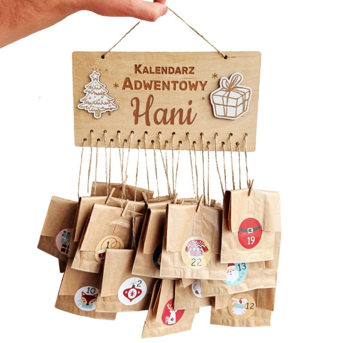 Na froncie grawer: „Kalendarz Adwentowy + imię dziecka”