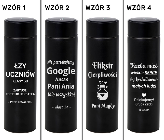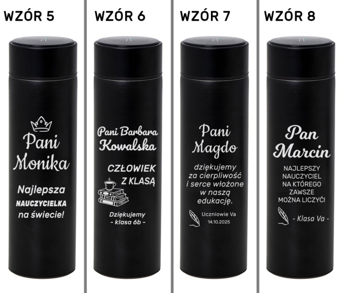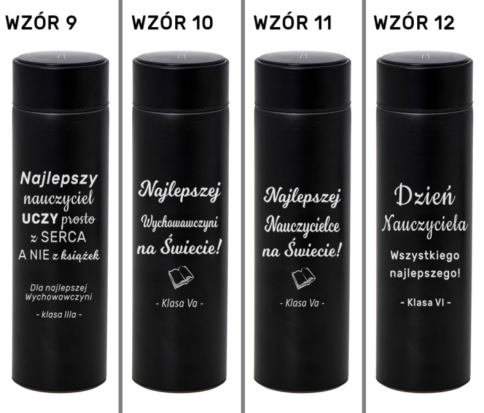 Każdy kubek personalizoujemy według Twoich preferencji. Do wyboru masz aż 12 unikalnych wzorów graweru – na których możesz podać m.in. imię i nazwisko nauczyciela podpis wręczających czy datę. Dzięki temu kubek staje się nie tylko praktycznym gadżetem, ale i pamiątką pełną emocji.