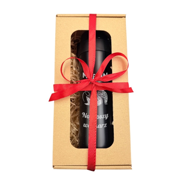 W zestawie znajduje się również czerwona wstążka, dzięki czemu prezent jest gotowy do wręczenia od razu po otrzymaniu – bez konieczności dodatkowego pakowania. Wstążkę należy zawiązać samemu.