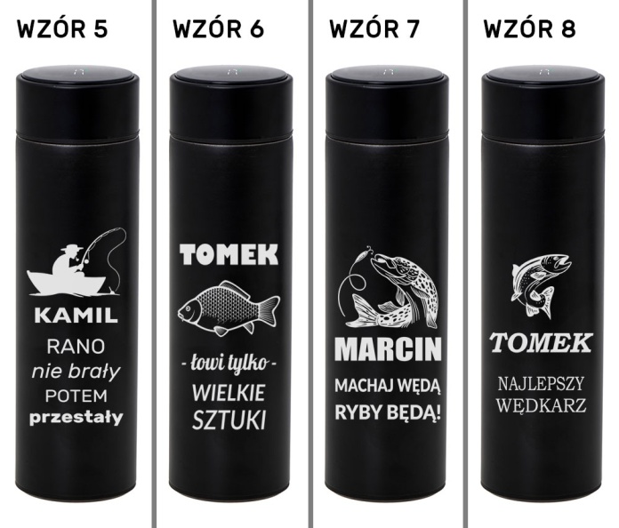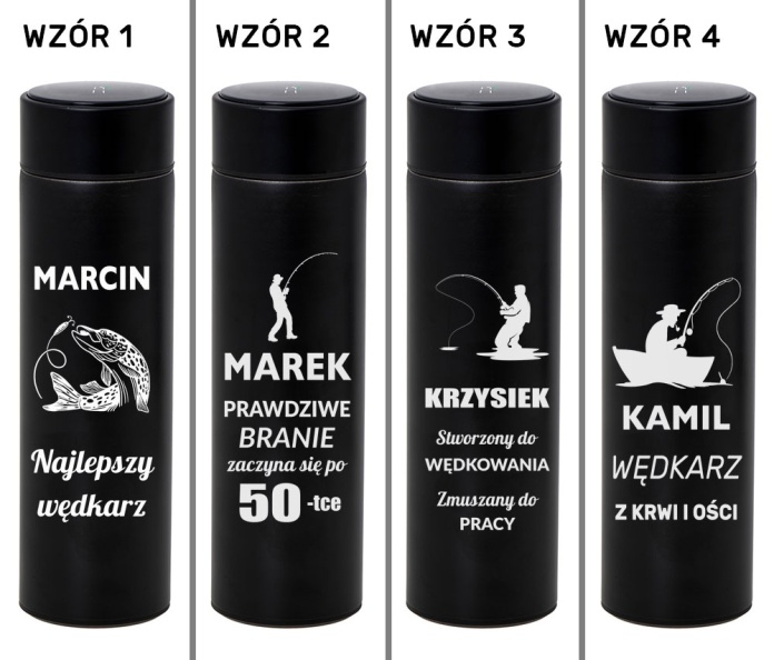 Na kubku wykonujemy trwały grawer laserowy z podanymi przez Ciebie danymi oraz wzorem związanym z wędkarstwem. Do wyboru aż 8 wzorów. Personalizacja nadaje kubkowi indywidualnego charakteru, sprawiając, że to nie tylko praktyczny gadżet, ale też wyjątkowa pamiątka.