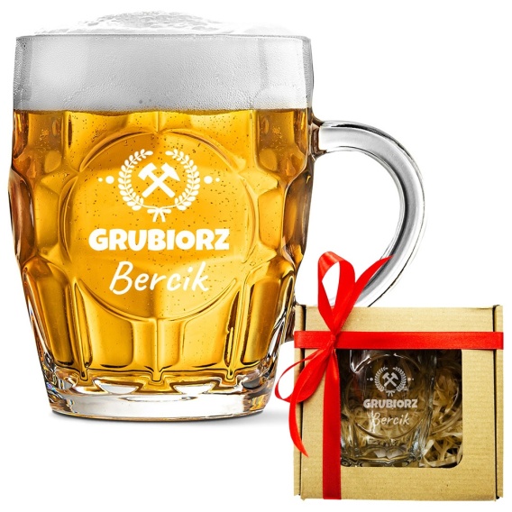 Kufel do Piwa z Grawerem dla Górnika - Prezent na Barbórka Dzień Górnika Grubiorz