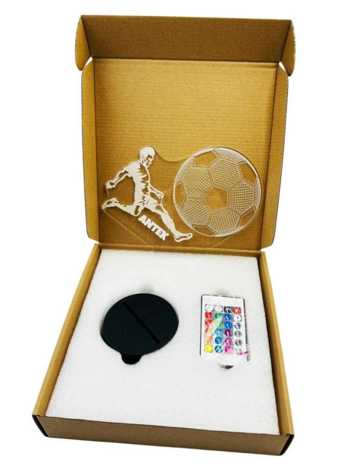 Płytka akrylowa, z której wykonano piłkarza, ma wysoką przepuszczalność światła, dzięki czemu oświetlenie LED tworzy magiczny efekt przestrzeni 3D.