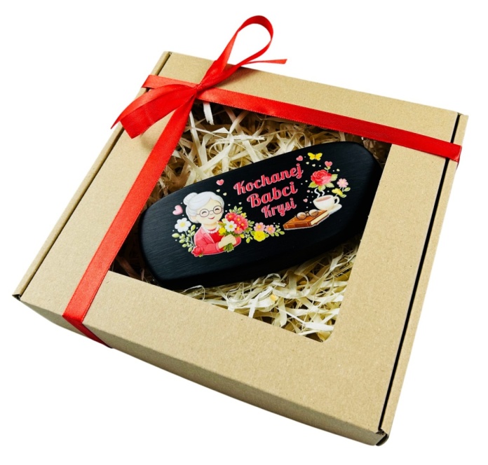 Są prezenty „na szybko” i są prezenty od serca. To etui zdecydowanie należy do tej drugiej kategorii. Stylowe, solidne i z uroczym nadrukiem widocznym na zdjęciu, uzupełnionym o napis „Kochanej Babci” + imię Babci. Efekt? Babcia się uśmiecha, okulary są bezpieczne, a Ty masz punkt za trafiony prezent 🎯