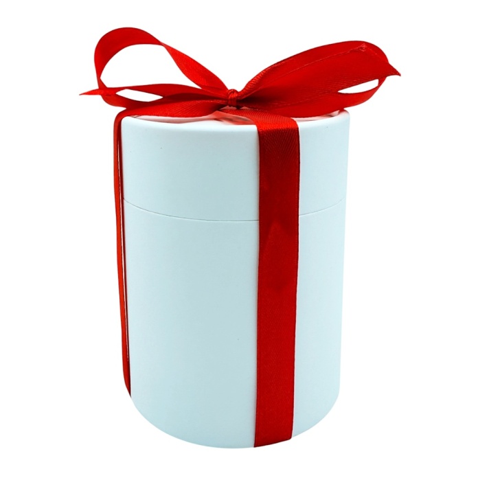 Każda świeca zapakowana jest w ozdobny kartonik prezentowy. W zestawie znajdziesz również czerwoną wstążkę, dzięki czemu prezent jest od razu gotowy do wręczenia – bez dodatkowego pakowania. Wstążkę należy zawiązać samemu.