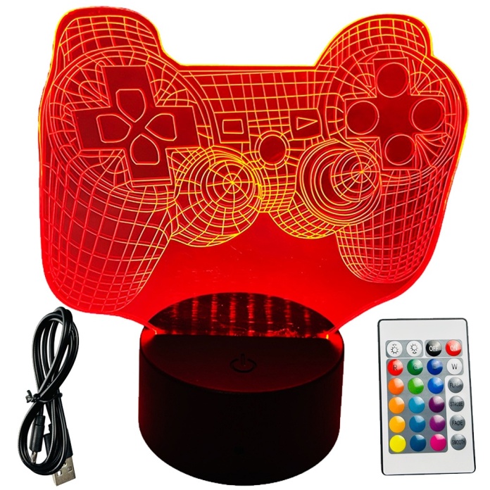 Stylowa lampka nocna 3D w kształcie kontrolera to świetny element dekoracyjny pokoju gracza.