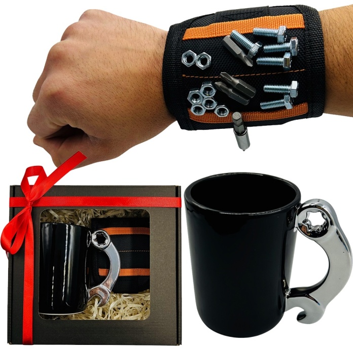 🔧 Zestaw Prezentowy dla Mechanika, Taty, Dziadka lub Męża – Kubek + Opaska Magnetyczna