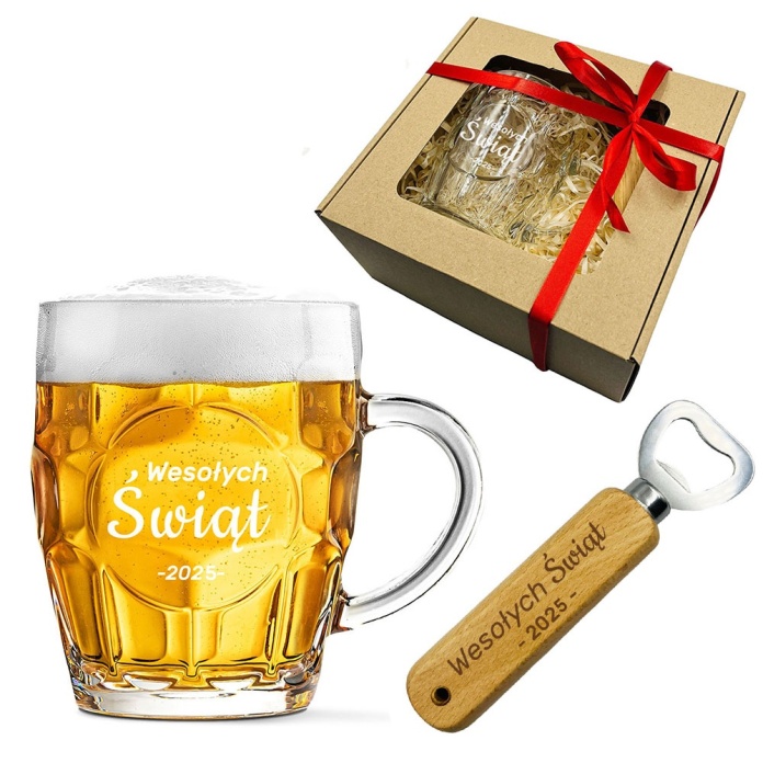 Zestaw kufel z grawerem + otwieracz z grawerem - wyjątkowy prezent na Święta