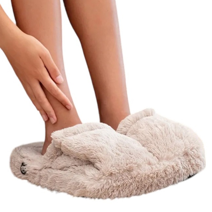 Wkładasz stopy do miękkiego, futrzanego wnętrza. Włączasz masaż przyciskiem na spodzie. Urządzenie zaczyna delikatnie wibrować, rozluźniając napięcie, pobudzając krążenie i pomagając zredukować ból po długim dniu. Do tego jest wyjątkowo przyjemny w dotyku — dokładnie jak ciepłe zimowe kapcie z funkcją SPA.